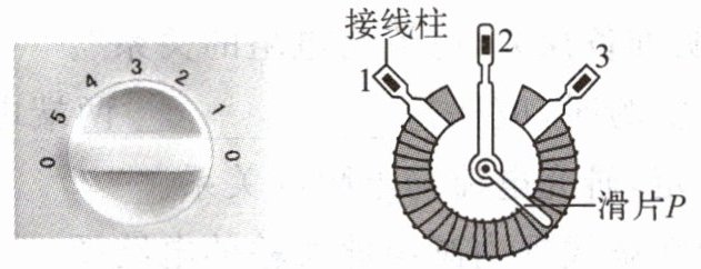 7. 如图所示,为某品牌风扇调速器和用于调速的电位器结构图,1、2、3是它的三个接线柱,如果要使滑片P顺时针转动时风扇转速加快,接入电路的接线柱是(