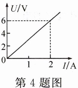 4. (2023·天津)定值电阻$R$的$U - I$关系图像如图所示,当该电阻两端电压为$3V$时,通过它的电流为(