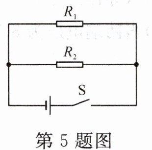 5. 如图所示的电路中,电阻阻值$R_{1} < R_{2}$。开关$S$闭合后,$R_{1}$、$R_{2}$两端的电压分别为$U_{1}$、$U_{2}$,通过$R_{1}$、$R_{2}$的电流分别为$I_{1}$、$I_{2}$。下列判断正确的是(