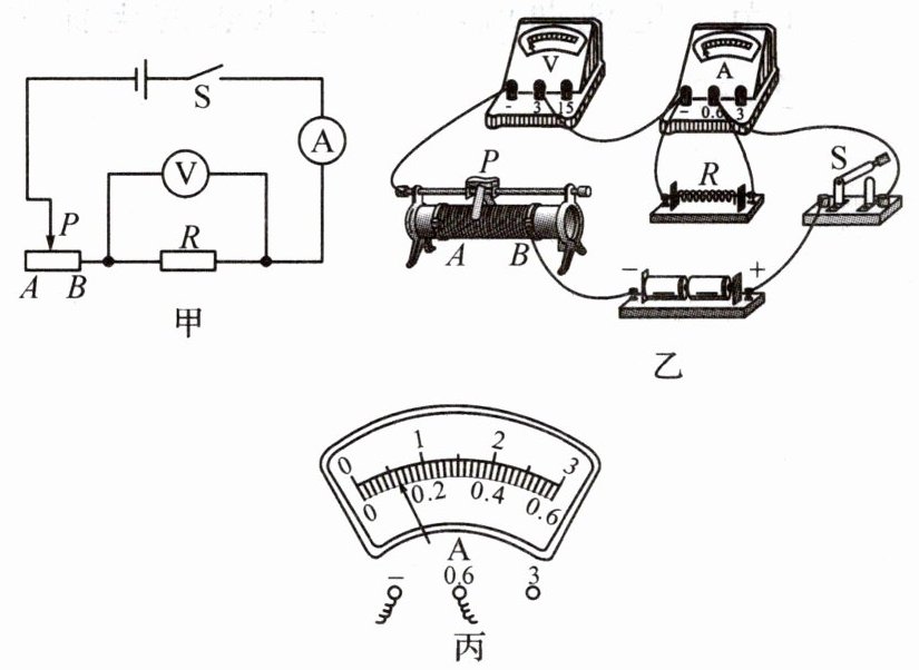 (填“$A$”或“$B$”)端移动,数据记录如表。其中第$3$次实验时电流表的示数如图丙所示,读数为0.12