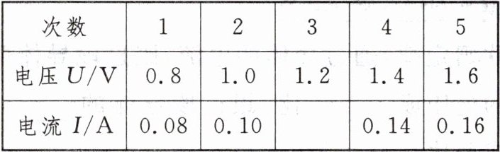 (4) 正确连接电路后,闭合开关,移动滑片,记录第$1$组电压表和电流表的示数后,为完成后续实验,应逐渐将滑片向
