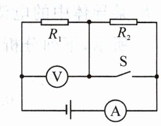 (2)开关S断开时,电阻$R_1$和$R_2$串联;电压表的示数:$U_1 = IR_1 = 0.2 A×20\ \Omega=4 V$