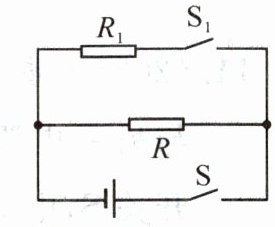 (2)同时闭合开关$S$、$S_{1}$,若通过干路的电流为$1.6\ {A}$,求通过电阻$R_{1}$的电流和电阻$R_{1}$的阻值。