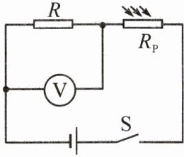 3. 如图是一款摄像机自主启动装置的简化电路图,电源电压恒为$12\ {V}$,$R_{P}$是红外线探测电阻,$R$是定值电阻,阻值为$8\ \Omega$。当$R$两端的电压达到$8\ {V}$时,摄像机自主启动拍摄。求: