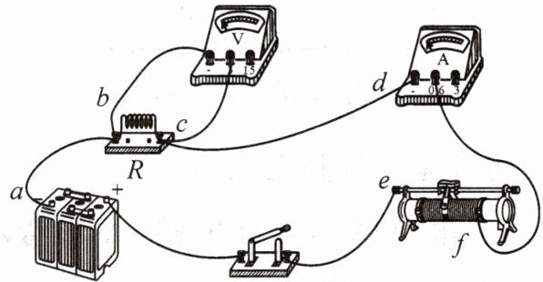 9. (2024 • 蚌埠高新区期中)如图所示,电源电压为 $ 6 \, V $,闭合开关后,小明发现电流表、电压表示数均为零,他用一根导线检查电路故障,当将该导线两端分别接到 $ a $、$ d $ 接线柱上,发现电流表有示数,电压表示数仍为 $ 0 $;当将该导线两端分别接到 $ c $、$ f $ 接线柱上,发现电压表有示数,电流表示数仍为 $ 0 $,由此可判断故障是 ()