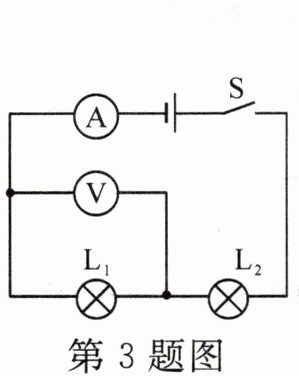 3. 如图所示的电路中,闭合开关后一灯亮,另一灯不亮,电流表有示数,电压表无示数,其原因可能是 ()