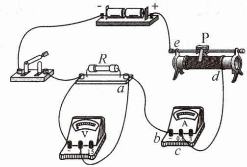 10. 如图所示的电路,将滑动变阻器的滑片 $ P $ 移至电阻值最大处,闭合开关,移动滑片 $ P $,发现电流表和电压表均无示数。为了排查电路故障,滑片 $ P $ 置于某个位置不动,只将与电压表“$ + $”接线柱相连导线的另一端 $ a $ 拆下,将其依次连接到 $ b $、$ c $、$ d $、$ e $ 接线柱上,发现电流表始终无示数,且只有当连接到 $ e $ 接线柱上时电压表有示数。若电路中只有一处故障,则发生的故障是 ()