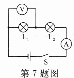 7. 如图所示,开关闭合,两个灯泡都发光,突然,一个灯泡熄灭,两个电表一个示数变大,一个示数变小,则该电路故障可能是 ()