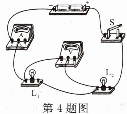 4. 如图所示的电路,闭合开关 $ S $ 后,两灯均发光,一段时间后,一盏灯突然熄灭,电流表、电压表都有示数,则该电路故障可能是 ()
