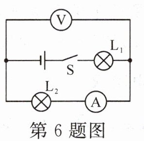 6. (2024 • 达州)如图所示的电路,闭合开关后,整个电路正常工作。其中一盏灯突然熄灭,两只电表示数均变大,则该电路可能发生的故障为 ()