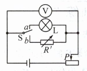 (1)将开关$S$与$a$连接,移动滑动变阻器的滑片$P$,使电压表的示数为$U_{额}$。