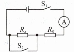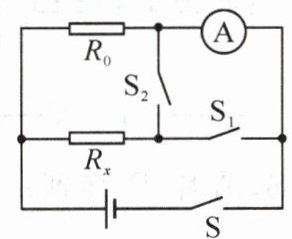6. 小张同学设计了一种测电阻的方法,电路图如图所示。$R_{x}$为待测电阻,电源电压恒定,$R_{0}$为阻值已知的定值电阻。实验步骤如下: