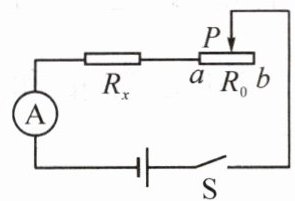 7. (2024·滨州节选)小滨用电流表和一个已知最大阻值为$R_{0}$的滑动变阻器测量未知电阻$R_{x}$的阻值,设计了如图所示的电路图,电源电压未知且保持不变,实验操作如下: