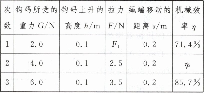 (用题中符号表示)求出第 2 次实验中滑轮组的机械效率$\eta_2=$80%