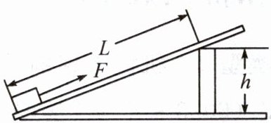 5. 小金用如图所示装置和相关的实验仪器探究斜面机械效率的影响因素,斜面长为$L$,高为$h$,他用沿斜面向上的拉力$F$把重为$G$的物体从斜面底端匀速拉到顶端。下列说法错误的是(