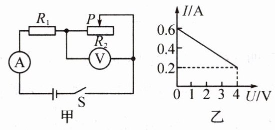 (1)当滑动变阻器接入电路中的电阻最大时,由图乙可知,此时通过$R_2$的电流和$R_2$两端的电压分别为$I_2=0.2A、$$U_2=4V$