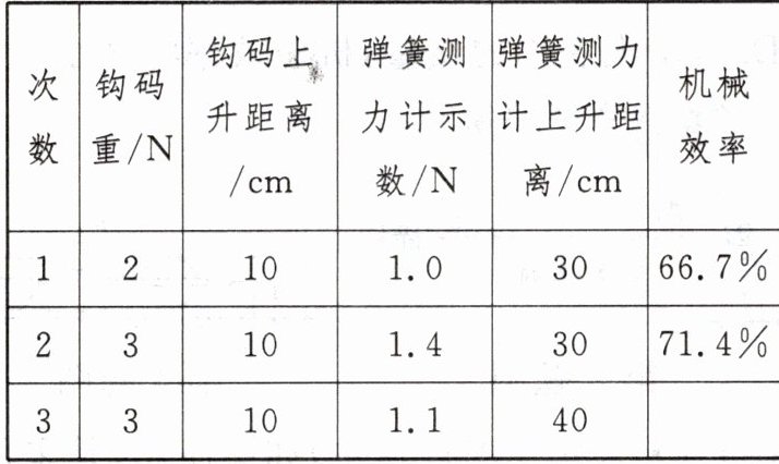 (结果保留到 0.1%)。(4)小明在实验过程中发现竖直向上匀速拉动弹簧测力计时读数很不方便,于是他便在弹簧测力计静止时读数。请你指出小明这样测出的数据是错误的原因: