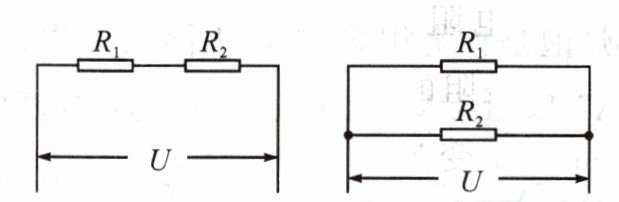 ① 电阻$R_{1}$和$R_{2}$串联接在电路中,消耗的电功率之比$P_{1}:P_{2}=I^{2}R_{1}:I^{2}R_{2}=R_{1}:R_{2}$。