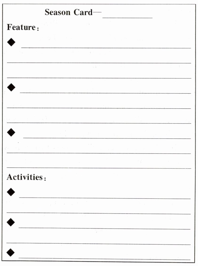 Use the words and phrases sorted out (整理) above to form sentences and make a season name card