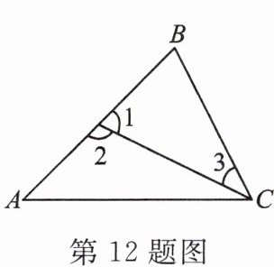 12. 如图,下列结论:① $ \angle 2 $ 与 $ \angle 3 $ 是内错角;② $ \angle 2 $ 与 $ \angle B $ 是同位角;③ $ \angle A $ 与 $ \angle B $ 是同旁内角;④ $ \angle A $ 与 $ \angle ACB $ 不是同旁内角. 其中正确的是