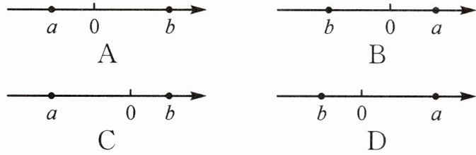 2. (2024·郑州管城区月考)已知 $a$,$b$ 是不为 0 的有理数,且 $|a| = -a$,$|b| = b$,$|a| > |b|$,那么用数轴上的点来表示 $a$,$b$ 时,正确的是(