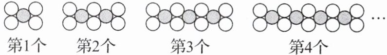 6. (2023·山西)如图所示的是一组有规律的图案,它由若干个大小相同的圆片组成.第 $1$ 个图案中有 $4$ 个白色圆片,第 $2$ 个图案中有 $6$ 个白色圆片,第 $3$ 个图案中有 $8$ 个白色圆片,第 $4$ 个图案中有 $10$ 个白色圆片$\cdots\cdots$依此规律,第 $n$ 个图案中有__________个白色圆片(用含 $n$ 的代数式表示).
