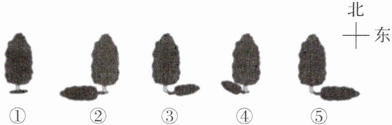 9. 如图所示的是大树的影子随太阳转动的情况(上午 8 时至下午 5 时之间),按时间先后顺序排列是(