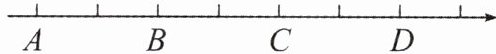 17. 如图所示,已知$A$,$B$,$C$,$D$四个点在一条没有标明原点的数轴上,点$A$与点$B$的距离为$2$个单位长度,点$A$与点$C$的距离为$4$个单位长度,点$A$与点$D$的距离为$6$个单位长度.
