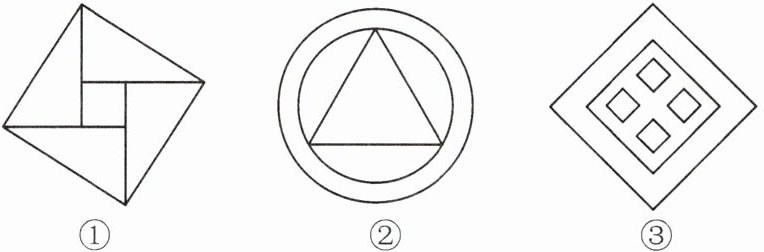 解:①由正方形、直角三角形组成;②由圆、三角形组成;③由正方形组成.