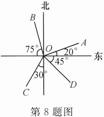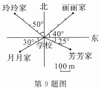 9. (1)荷花池在喷泉的北偏东$40^{\circ}$的方向上,这是以