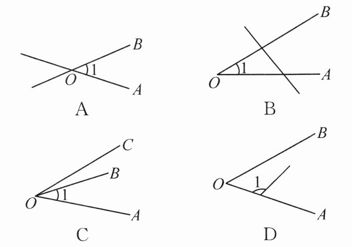 3. 下列图形中,能用∠1,∠AOB,∠O 三种方法表示同一个角的是 (