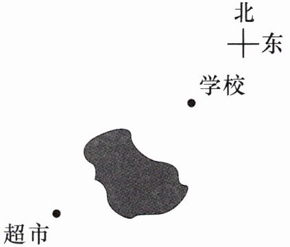 15. 如图,在某地区的一张地图上有学校、超市和公园,但地图被墨迹污染,公园的具体位置看不清,只知道公园的位置在学校的南偏西$45^{\circ}$方向上,在超市的北偏东$60^{\circ}$方向上。根据上述信息,请找出公园的具体位置。