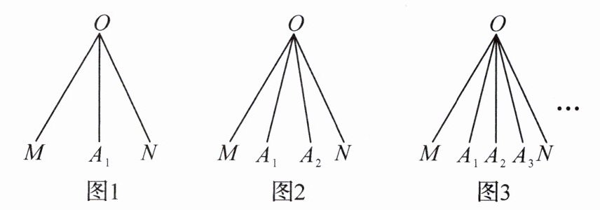 (3)如图 3,∠MON 内部有三条射线$OA_{1}$,$OA_{2}$,$OA_{3}$,则图中共有