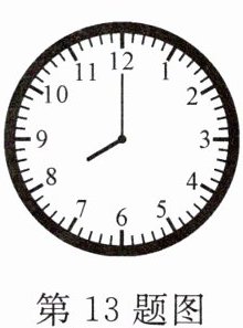 13. 如图,从 8 时整开始,过了 20 分钟后,分针与时针所夹角的度数是
