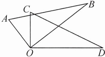 9. 如图,两个直角三角形的直角顶点重合,$∠AOC = 40^{\circ}$,求$∠BOD$的度数.结合图形,完成填空: