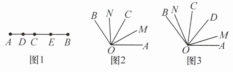 (2)我们发现角的很多规律和线段一样,如图2,若$\angle AOB = 120^{\circ}$,OC是$\angle AOB$内部的一条射线,射线OM平分$\angle AOC$,射线ON平分$\angle BOC$,求$\angle MON$的度数;