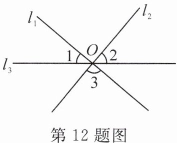 12. (兰生复旦校本经典题) 如图,直线 $ l_1 $,$ l_2 $,$ l_3 $ 相交于点 $ O $,$ \angle 1 = 40^{\circ} $,$ \angle 2 = 50^{\circ} $,则 $ \angle 3 $ 的度数为