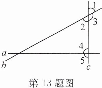 13. 如图所示,直线 $ a $,$ b $,$ c $ 两两相交,$ \angle 1 = 60^{\circ} $,$ \angle 2 = \frac{2}{3} \angle 4 $,则 $ \angle 3 = $