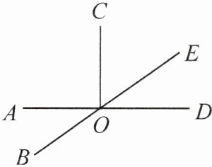 14. 如图,已知直线 $ AD $,$ BE $ 相交于点 $ O $,$ \angle DOE $ 与 $ \angle COE $ 互余,$ \angle COE = 55^{\circ} $,求 $ \angle AOB $ 的度数.