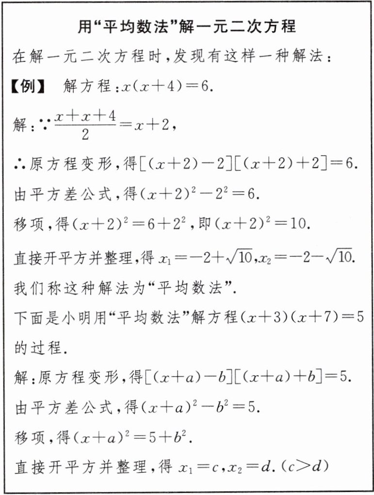 (2) 请用“平均数法”解方程:$(x - 5)(x + 3)=5$.