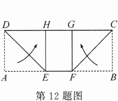 12. (2024·南阳名校期中联考)如图,四边形 ABCD 是一张矩形纸片. 将其按如图所示的方式折叠:使边 DA 落在边 DC 上,点 A 落在点 H 处,折痕为 DE;使边 CB 落在边 CD 上,点 B 落在点 G 处,折痕为 CF. 若矩形 HEFG 与原矩形 ABCD 相似,$ AD = 1 $,则 CD 的长为