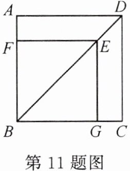 11. 如图,正方形 ABCD 中,点 E 是对角线 BD 上的一点,$ BE = BC $,过点 E 作 $ EF \perp AB $,$ EG \perp BC $,垂足分别为 F,G,则正方形 FBGE 与正方形 ABCD 的边长之比为