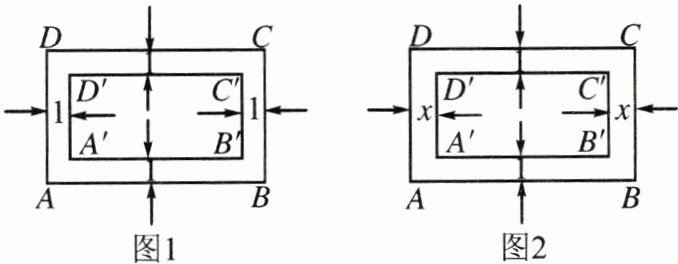 (2) 如图 2,当 $ x $ 为多少时,图中的两个矩形 ABCD 与 $ A'B'C'D' $ 相似?