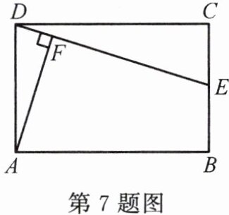 7.(教材 P76 习题 T7 变式)如图,$E$ 是矩形 $ABCD$ 的边 $CB$ 上的一点,$AF\perp DE$ 于点 $F$. 若 $AB = 3$,$AD = 2$,$CE = 1$,则 $DF=$