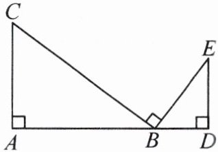 9.(2023·邵阳)如图,$CA\perp AD$,$ED\perp AD$,$B$ 是线段 $AD$ 上的一点,且 $CB\perp BE$. 已知 $AB = 8$,$AC = 6$,$DE = 4$.