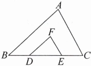 8. 如图,点 $D$,$E$ 在 $BC$ 上,且 $FD// AB$,$FE// AC$. 求证:$\triangle ABC\backsim\triangle FDE$.