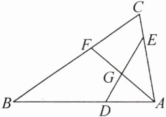 11. 如图,在$\triangle ABC$中,点$D$,$E$分别在$AB$,$AC$上,$AF$平分$\angle BAC$交$DE$于点$G$。若$AE=3$,$EC=1$,$AD=2$,$BD=4$,则$AG:AF=$(