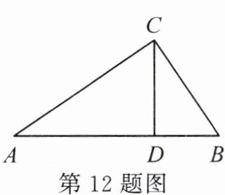 $12. (2023·$郑州管城区月考$)$如图,在$Rt \triangle ABC$中,$\angle ACB=90^{\circ},$$CD \perp AB,$垂足为$D。$如果$\frac{C_{\triangle ADC}}{C_{\triangle CDB}}=\frac{3}{2},$$AD=8,$那么$CD$的长是