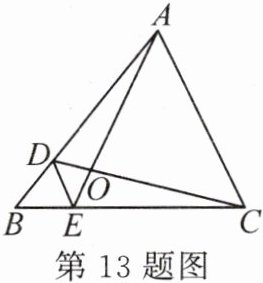 $13. $如图所示,$D,$$E$分别是$\triangle ABC$的边$AB,$$BC$上的点,$DE // AC。$若$S_{\triangle BDE}:S_{\triangle CDE}=1:3,$则$S_{\triangle BDE}:S_{四边形DECA}$的值为