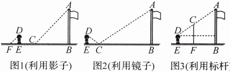 (2)如图2,小李站在操场上点E处,前面水平放置镜面C,并通过镜面观测到旗杆顶部A.小组同学测得小李的眼睛距地面高度DE=1.5m,小李到镜面距离EC=2m,镜面到旗杆的距离CB=16m.求旗杆的高度;